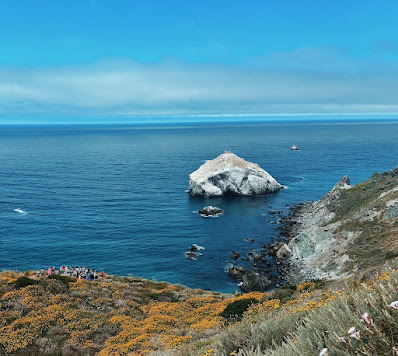 On the way to the rock we saw the mountains on our right and the beautiful Pacific Ocean on the left. We stopped at a Vista Point aka Ragged Point to take group pictures and admire the oceanside along with our favorite, using the bathroom.