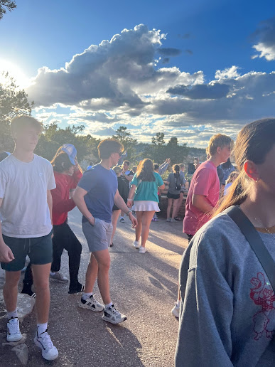Today we woke up at 5:30 in Roswell at the New Mexico Military Institute and said goodbye to the aliens and hello to the artist of the dessert. The crazy thing about Arizona is that the state doesn't follow daylight savings time so the sun was up when we were up! We hopped in the bus and had a scrumptious breakfast of bagels with TWO options of cream cheese and an orange, it was so filling and delicious. Then we made our way from New Mexico to Arizona and of course we had to play High School Musical music when going through Albuquerque, New Mexico. In the van we played carpool karaoke and did a 5 questing interview with everyone to get to know everyone! On the way to Arizona we stopped at the Petrified Forest and the Painted Desert. While there we had two presentations: the Petrified Forest (Callee Chesser) and the Painted Desert (Seth Enzor). We took many pictures with the national forest signs and kissed the FAMOUS petrified forest rock, for tradition and extra good luck. The painted desert was a great preview to our later stop of the Grand Canyon!